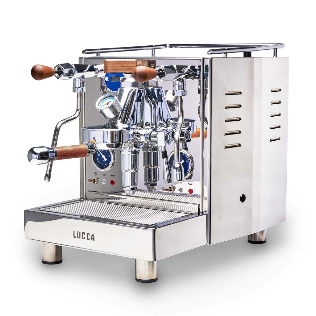 Experience the authentic taste of traditional Italian espresso in your own home with the LUCCA M58 Espresso Machine. This espresso machine boasts rounded panels, large gauges, and joystick controls for effortless operation; clearly built for durability and beauty.