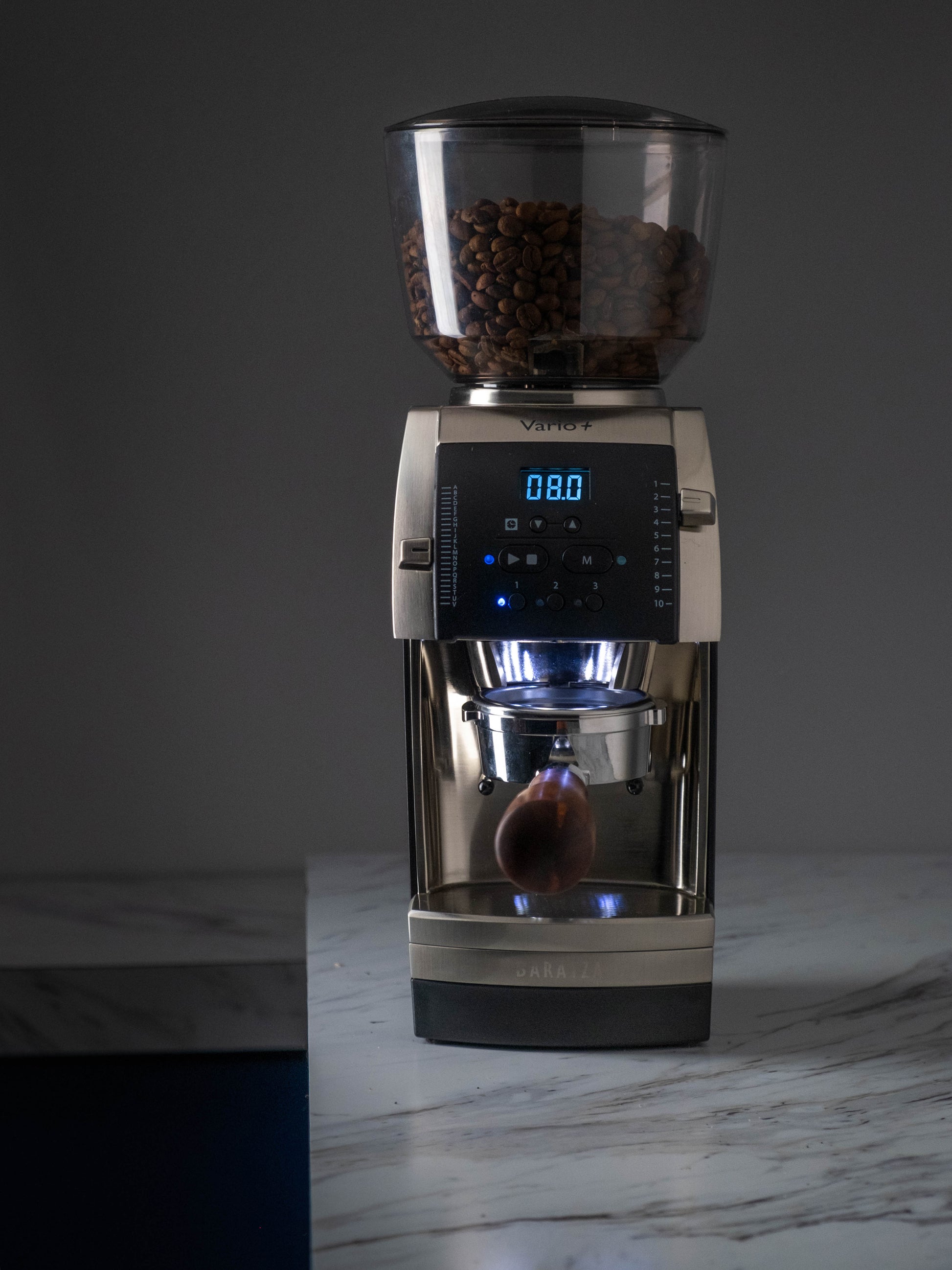 The Vario+ brings flat burr grinding to your kitchen for cafe-quality coffee in a compact package. Set and save up to three timer presets for convenient hands-free dosing into the included portafilter holder.